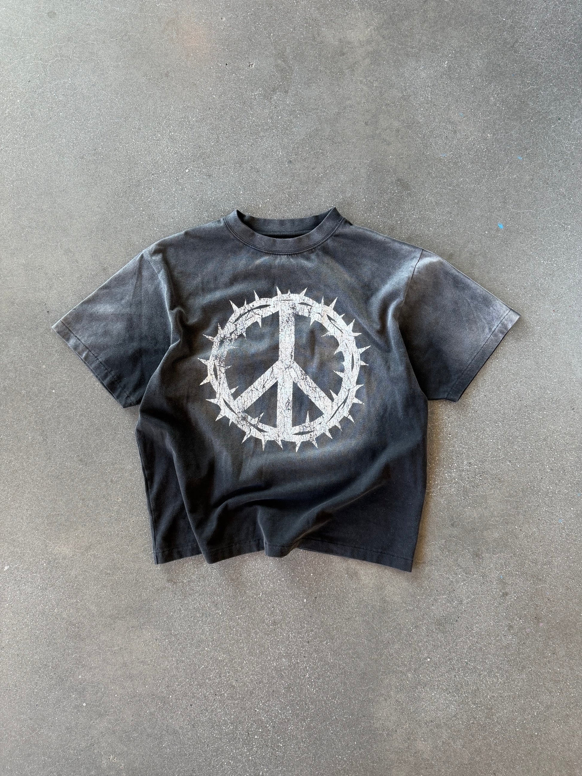 Faith woven into form, refined as timeless. Crafted to balance vintage character with modern refinement. Sun-faded and sharply cut, the piece carries a structured silhouette and elevated cotton hand-feel.